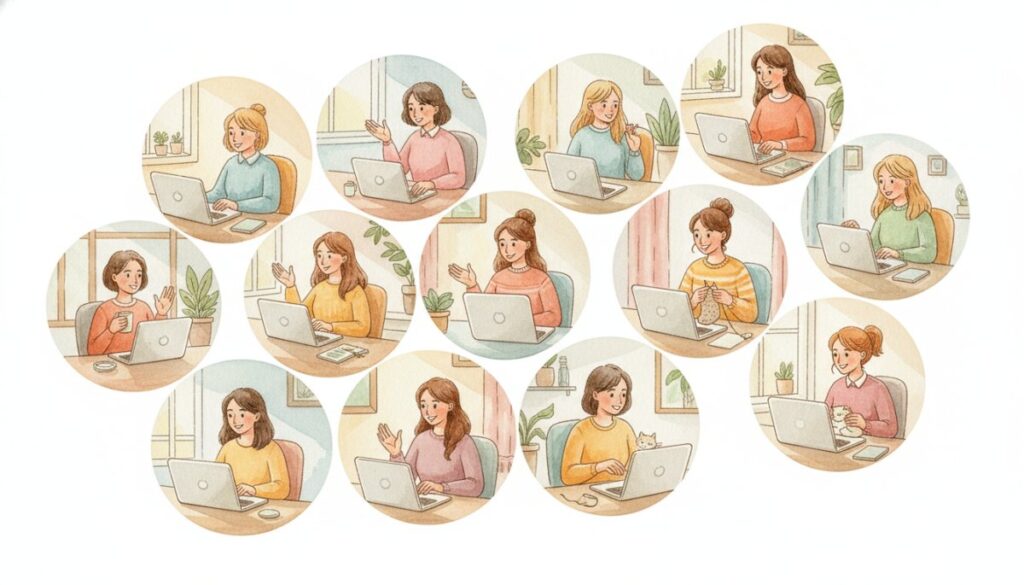 画面の向こうにいるのは、赤ちゃんを抱っこしながらパソコンに向かうママや、家事を終えてようやく自分時間を作った深夜のママたち。